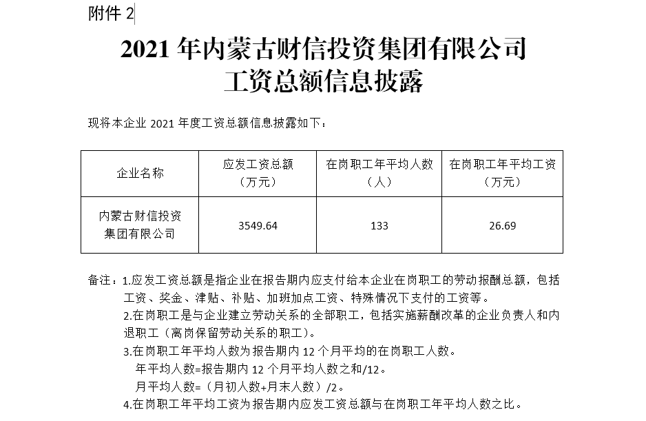 2021年內(nèi)蒙古財信投資集團(tuán)有限公司 工資總額信息披露