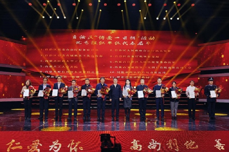近日,內蒙古財信投資集團有限公司被內蒙古自治區政府授予“博愛一日捐”活動“優秀組織單位”榮譽稱號,并作為獲獎代表出席了在內蒙古電視臺舉行的頒獎儀式。